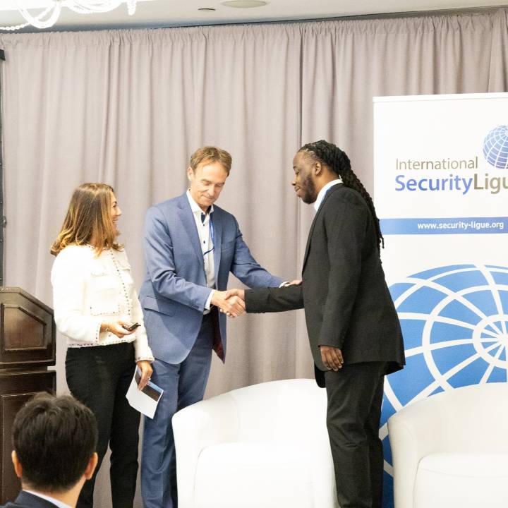 Ligue Chairman Magnus Ahlqvist and Ligue Secretary General Armin Berchtold accompanied Chrissy in presenting Mr. Hardy with the award, which is given in honor of the long-standing, former Chairman and President of the International Security Ligue, Jørgen Philipp-Sørensen. Ligue leaders said they were pleased to continue its tradition of honoring extraordinary work and the critical role security professionals play in the safety of societies by spotlighting the extraordinary achievements of Mr. Hardy.